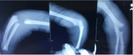 Figure 2. Radiographs at 16 Days after birth with Early Callus Formation (one week after trauma)